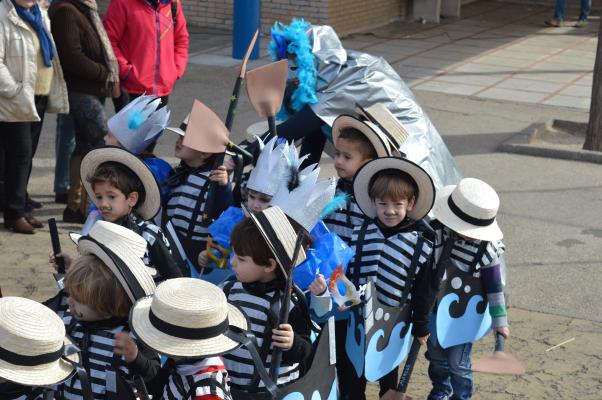 A pesar de que todos los alumnos de Infantil llevaban la misma temática introdujeron matices de color en sus trajes elaborados con bolsas de colores, goma eva, gomets y cartulinas, materiales elegidos para dar uniformidad a todo el Desfile.