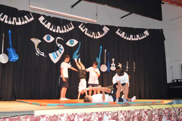 Después llegó la exhibición de Acrosport, un trabajo realizado en Ed. Física pero en el que ellos van diseñando bailes y acrobacias, todas muy aplaudidas por los asistentes.