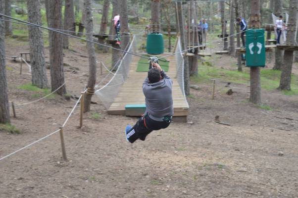 La primera tarea fue la de colocarse el arnés y aprender a manejar los mosquetones inteligentes y la polea a ras de suelo para luego atreverse con distintos circuitos. Casi todos hicieron el Kids, la Jungla y el Explorador, pero los más atrevidos apostaron por el Aventura también, y así tirolinas, pasarelas japonesas, túneles, troncos móviles, redes birmanas, columpios, etcétera, hicieron las delicias de alumnos y profes para hacer pasar un día genial y divertido.